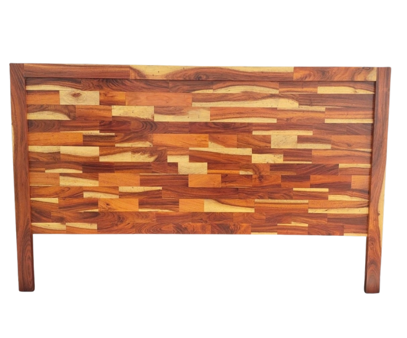 Este cabecera de diseño geométrico combina distintas tonalidades cálidas de la madera, logrando un estilo moderno y acogedor. Ideal para quienes desean darle personalidad a su habitación sin perder la conexión con lo auténtico.